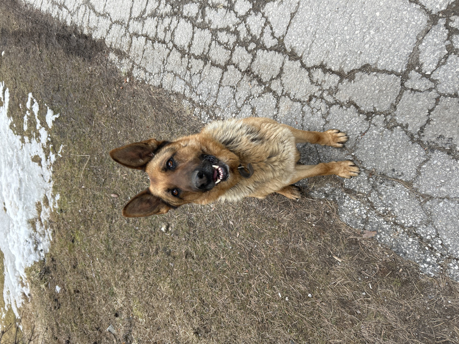 - "The image presents a tan and black German Shepherd dog seated on a heavily cracked asphalt surface in Beli Iskar, Bulgaria" by FM-sqIIh1, licensed under CC BY 4.0
