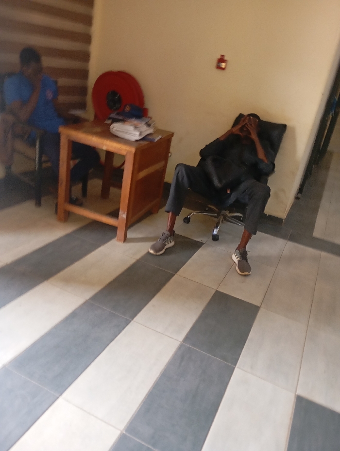 This image, captured indoors in Jos, Nigeria, presents two adult males within a structured environment