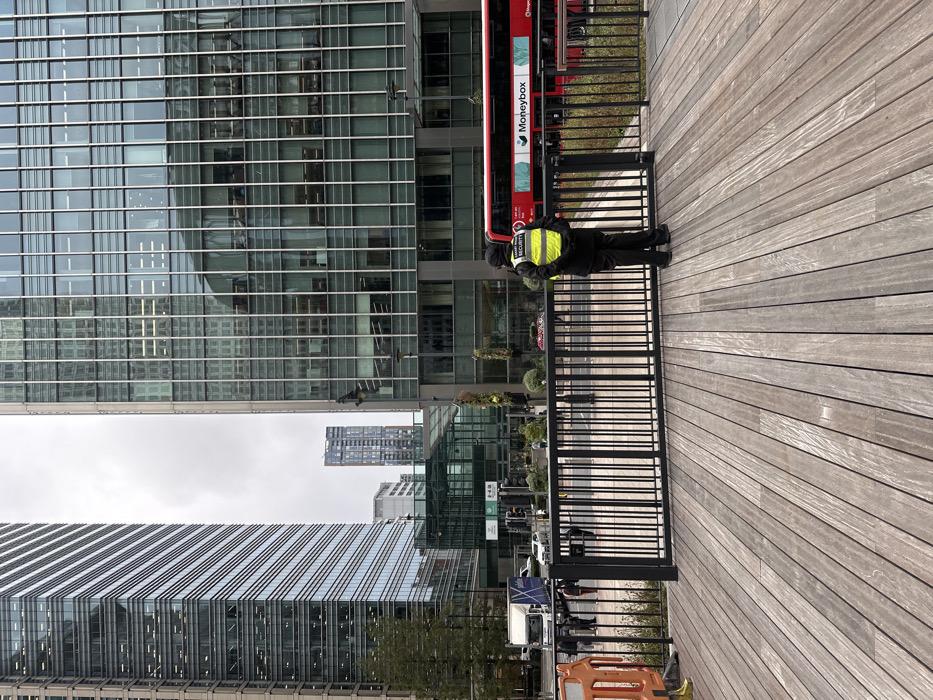 - "The image captures a modern urban street scene in Canary Wharf, London, United Kingdom, under an overcast sky" by FM-tAd7y1, licensed under CC BY 4.0