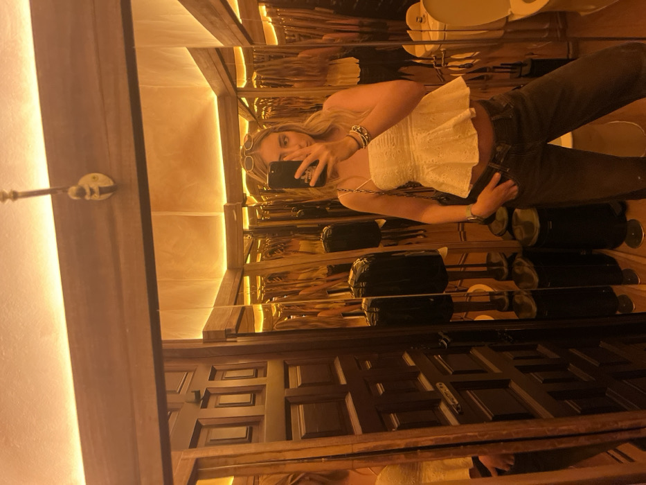 - "A blonde woman is depicted taking a mirror selfie in what appears to be a public restroom" by FM-l2qUu2, licensed under CC BY 4.0
