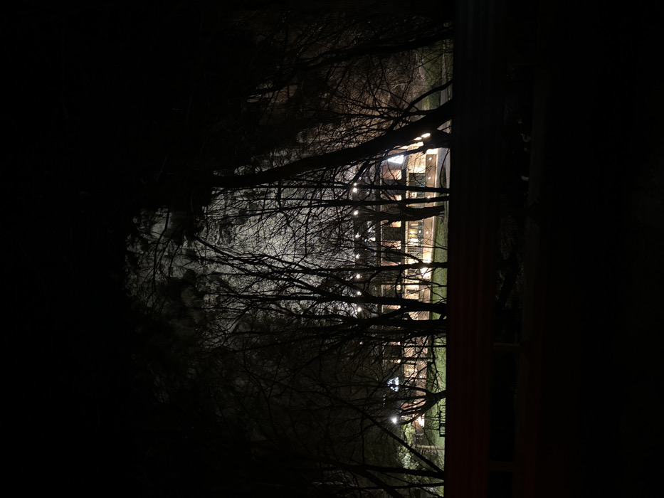 - "The image depicts a nighttime scene in Vratsa, Bulgaria, focusing on an illuminated multi-story building viewed through a dense line of silhouetted, leafless deciduous trees" by FM-thQpd2, licensed under CC BY 4.0