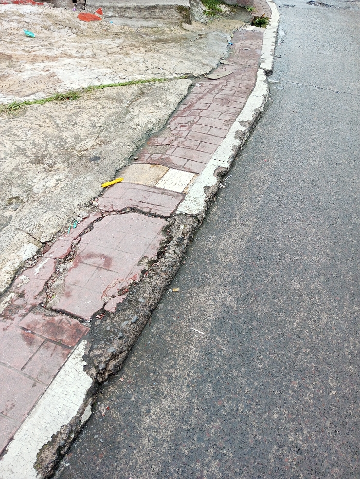 - "The image depicts a ground-level view of a street in Ambakirano, Madagascar, showcasing a severely deteriorated concrete sidewalk adjacent to an asphalt road" by FM-HWMWB2, licensed under CC BY 4.0