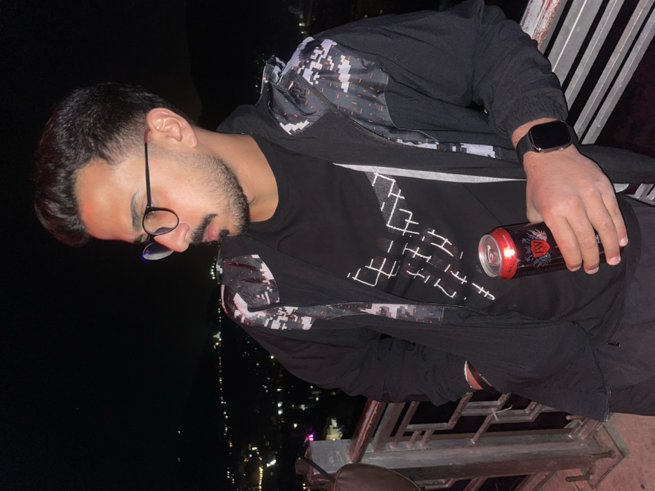 - "A male individual is depicted outdoors at night, positioned against a metal railing overlooking a illuminated cityscape with a dark mountain silhouette in the background" by FM-okz7B2, licensed under CC BY 4.0