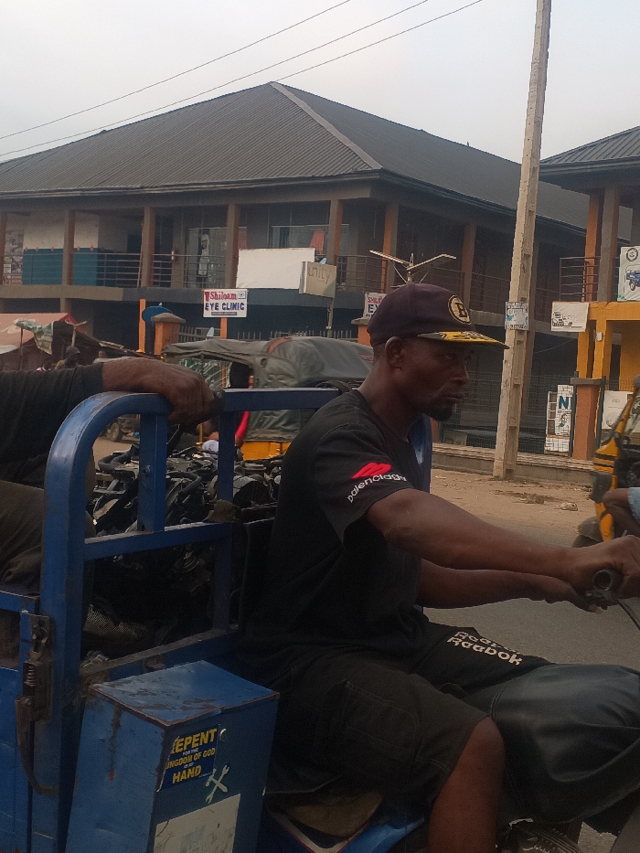 - "The image depicts a daytime street scene in Orifite, Nigeria, centered on a male driver operating a blue motorized tricycle" by FM-mFVo23, licensed under CC BY 4.0