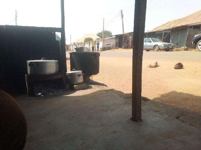 The image displays an outdoor scene in Barakin Akawo, Nigeria, under clear daylight conditions