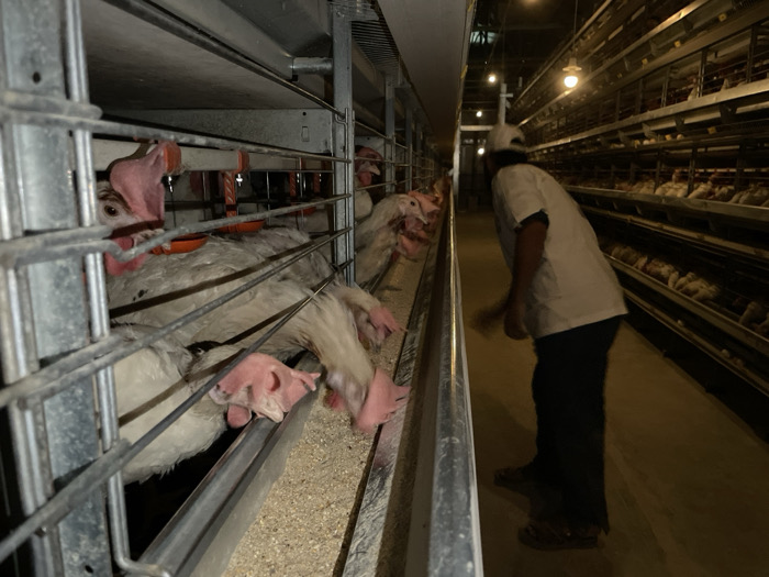 This image depicts an interior view of a commercial poultry farm located in Shuyene Vosta, Afghanistan