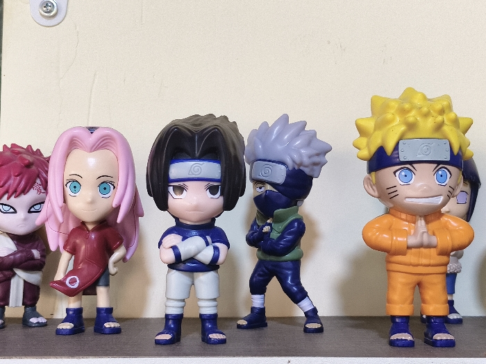 - "The scene, located in Chimbote, Peru, depicts a static display of six collectible figures arranged in a row on a dark, flat surface, likely a shelf" by FM-uSc8y1, licensed under CC BY 4.0
