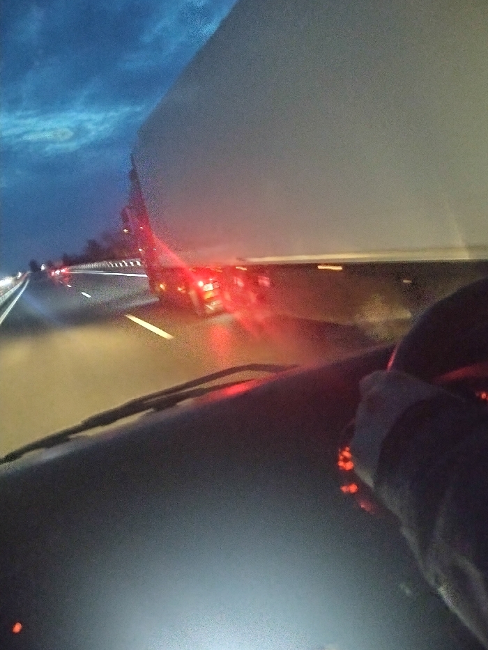 - "The image presents a view from inside a vehicle traveling on a multi-lane highway in the vicinity of Saraia, Bulgaria, during twilight or nighttime conditions" by FM-qFlz22, licensed under CC BY 4.0