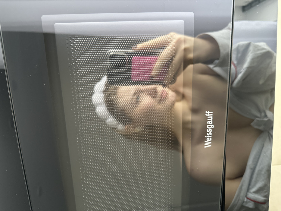 - "A close-up image depicts the reflection of an individual in the glass door of a "Weissgauff" branded microwave oven" by FM-iSKVh2, licensed under CC BY 4.0
