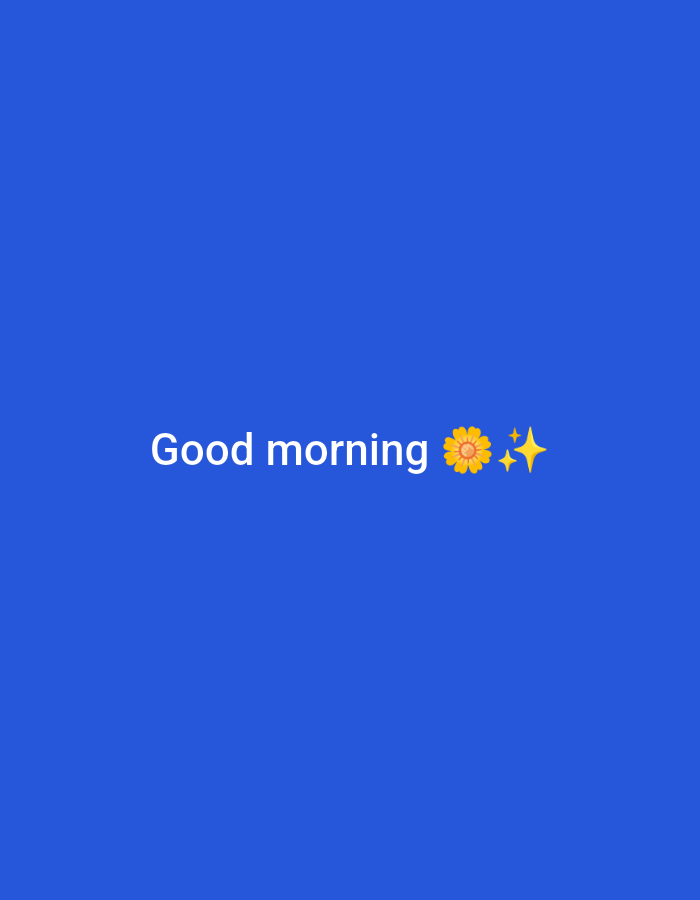 This image is a digital graphic with a solid royal blue background. Centered horizontally, slightly above the vertical midpoint, is the text "Good morning" in white, sans-serif font. To the immediate right of the text is a yellow-orange flower emoji with a brown center. Further to the right of the flower are two yellow star emojis, one appearing slightly larger than the other, both depicting a four-pointed sparkle or shine. There are no people, actions, interactions, or a discernible physical environment depicted. The described location in the city of Unknown, Unknown is not represented in this abstract digital scene.