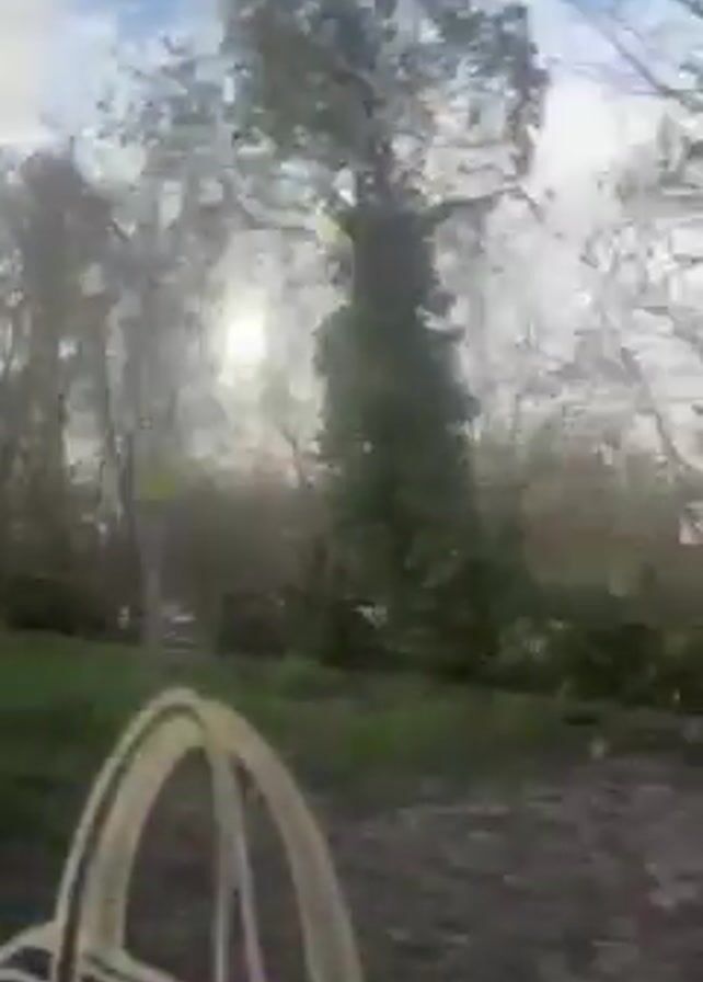 The video appears to be taken from a moving train or vehicle, looking out the window