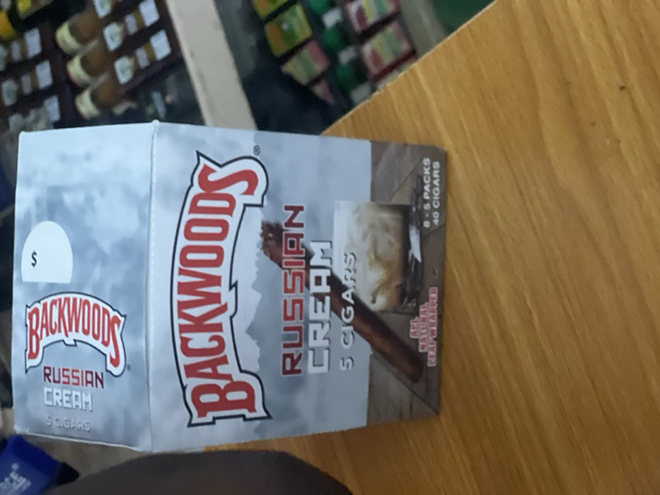 - "The image displays a close-up view of a "Backwoods Russian Cream" cigar box positioned on a light brown wooden surface" by FM-njRDH2, licensed under CC BY 4.0