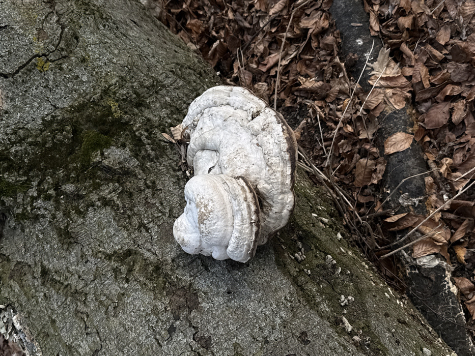 - "The scene depicts a large, white, bracket fungus (polypore) affixed to the side of a greyish-brown tree trunk, located in Stupava, Slovakia" by FM-01slO2, licensed under CC BY 4.0
