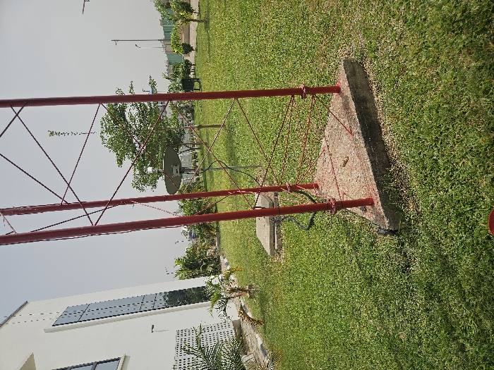 - "This image depicts an outdoor scene in Gwagwada, Nigeria, featuring a red metal lattice tower prominently in the foreground, anchored to a triangular concrete base" by FM-wD7Od2, licensed under CC BY 4.0