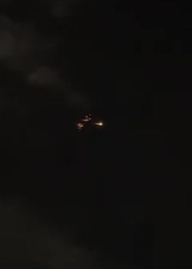 several bright yellow flashes in the night sky, interspersed with occasional smaller flashes