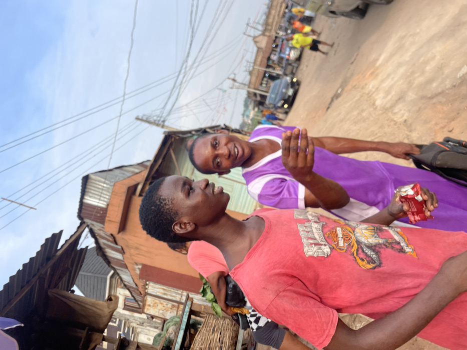 - "Two young men stand on a street in front of informal shops" by FM-NpJp92, licensed under CC BY 4.0