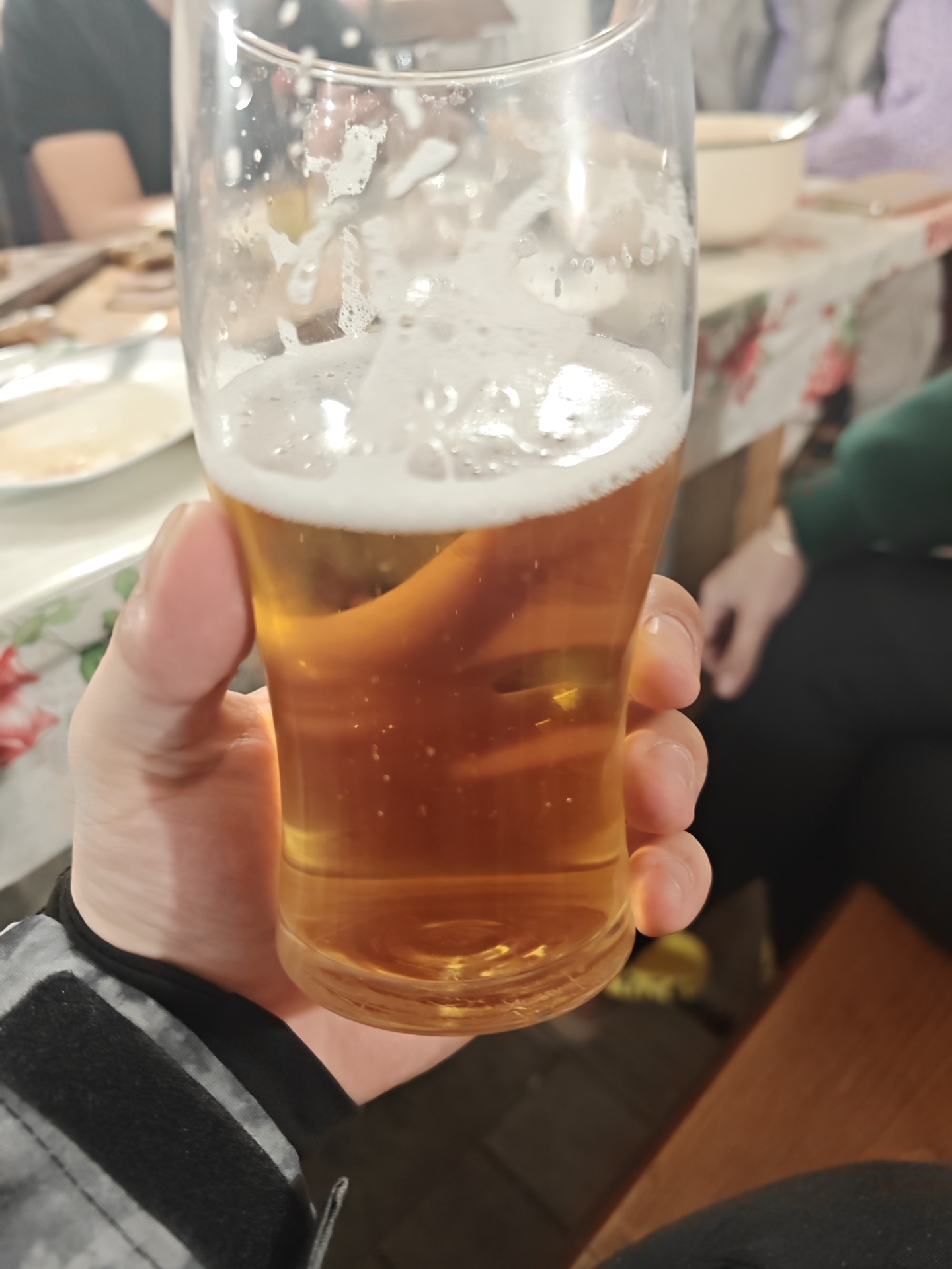 - "A person holds a glass of beer with a white foamy head in their right hand" by FM-wARLW2, licensed under CC BY 4.0