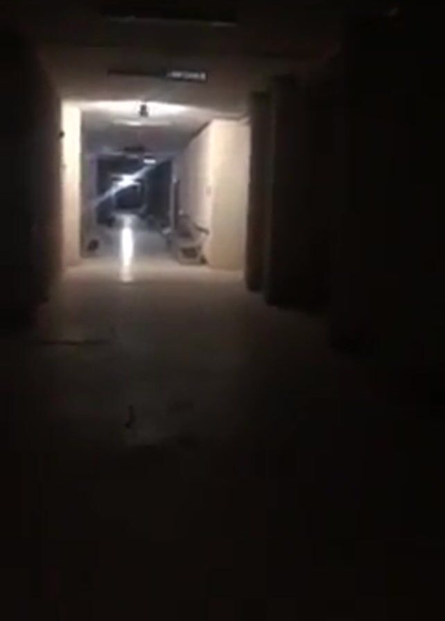 The video begins in a dimly lit, narrow hallway