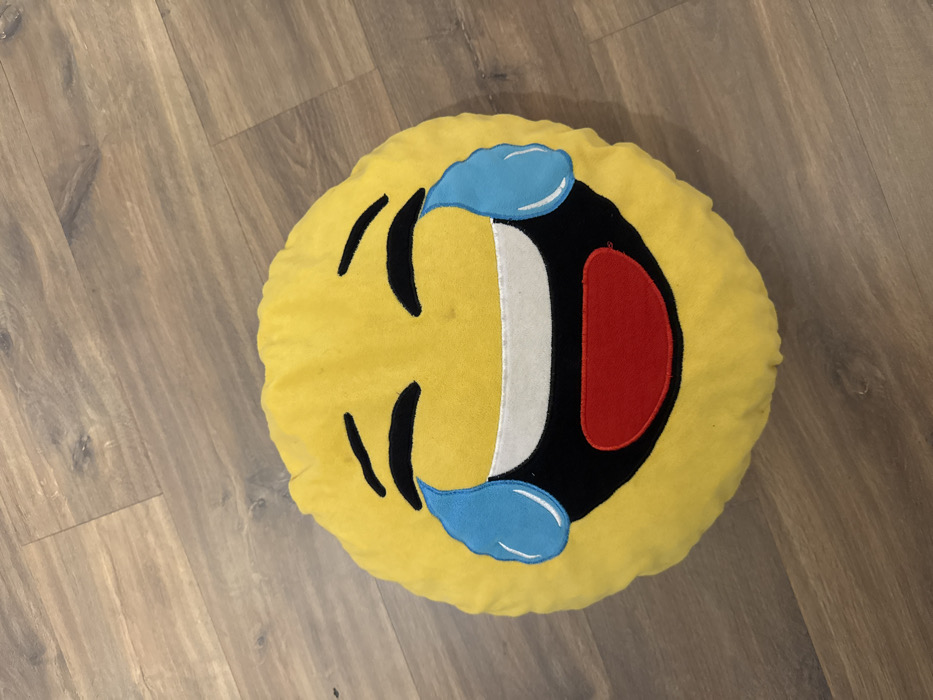 - "A yellow round emoji pillow is lying on a wooden floor" by FM-vKWxk2, licensed under CC BY 4.0