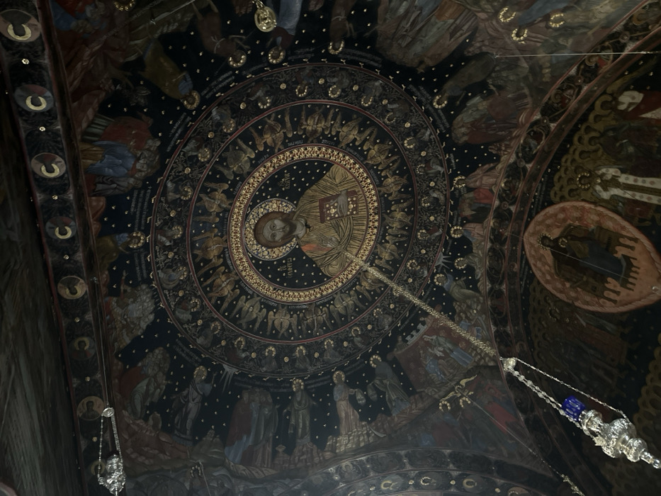 - "The image displays the intricately frescoed interior dome and vaulted ceiling of a religious structure, identified as being within the Bachkovo Monastery complex in Bachkovo, Bulgaria" by FM-o3SHn1, licensed under CC BY 4.0
