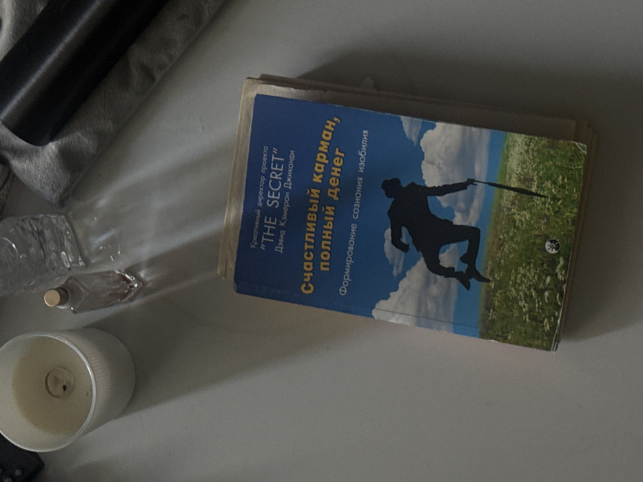 - "A still life composition captures a worn Russian-language book titled "Счастливый карман, полный денег" (Happy pocket, full of money) by David Cameron Gikandi, stacked on a light-colored surface in Dubai, United Arab Emirates" by FM-8hjXn1, licensed under CC BY 4.0