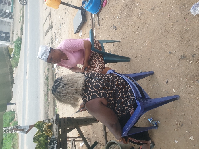 The image captures an outdoor scene in Umuode, Nigeria, depicting an informal market or roadside stall environment