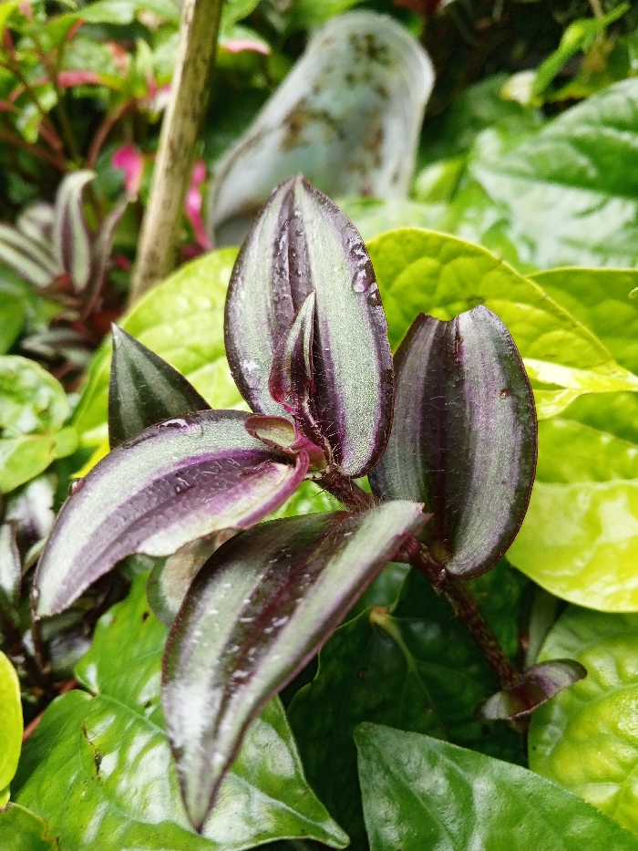 - "A detailed, close-up photograph depicts a cluster of a *Tradescantia zebrina* plant, commonly known as Wandering Jew, situated in the city of Phoukhoun, Laos" by FM-5qMEH3, licensed under CC BY 4.0