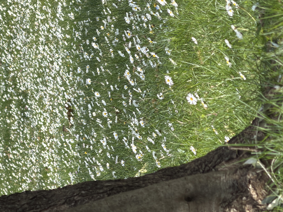 - "The scene, located in Bar, Montenegro, displays a ground-level perspective of a natural landscape dominated by a vast field of green grass densely populated with small, white daisy-like flowers, each featuring a yellow center" by FM-kCWCp1, licensed under CC BY 4.0