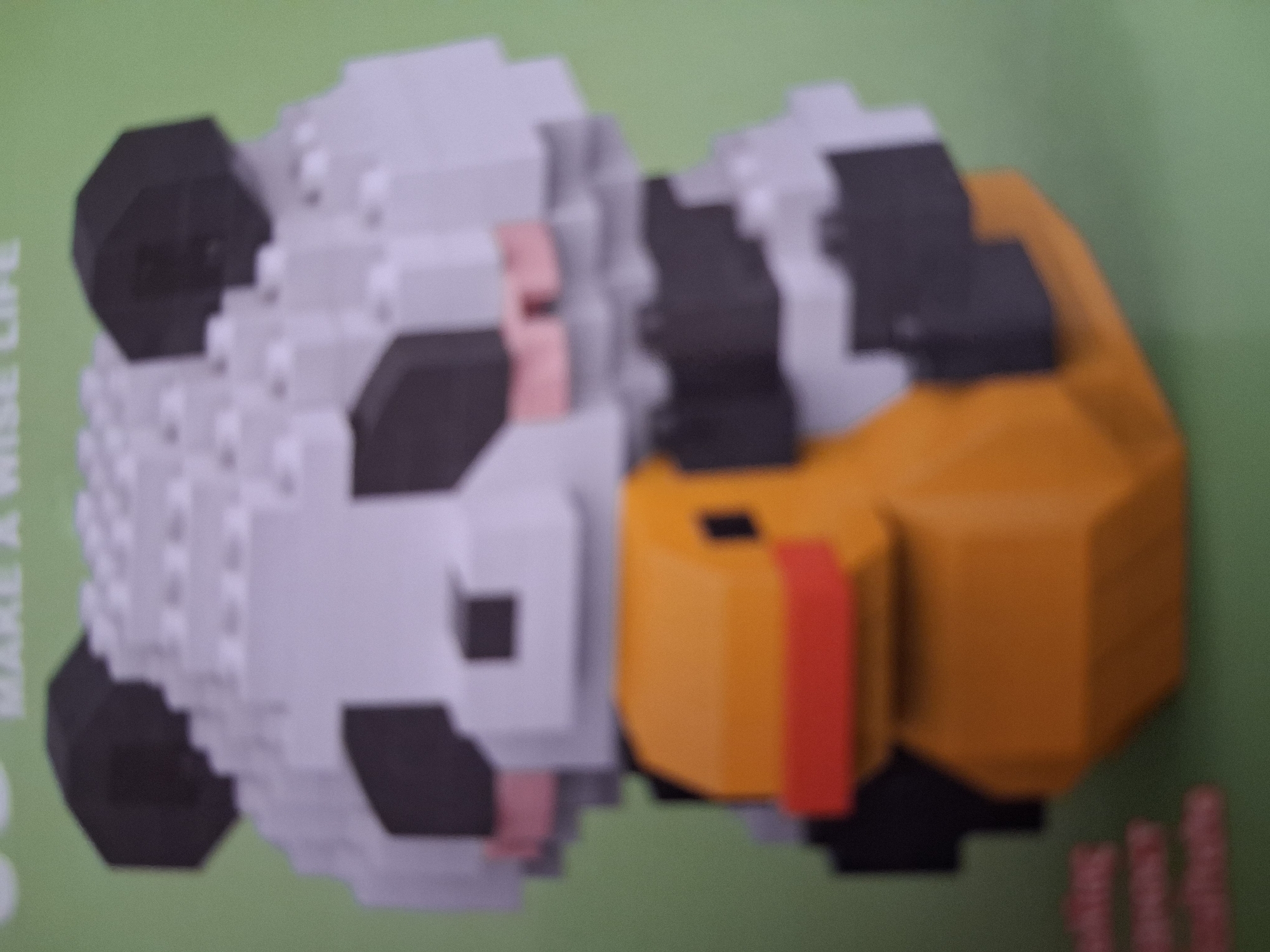 The image displays a construct of interlocking building blocks against a plain light green background