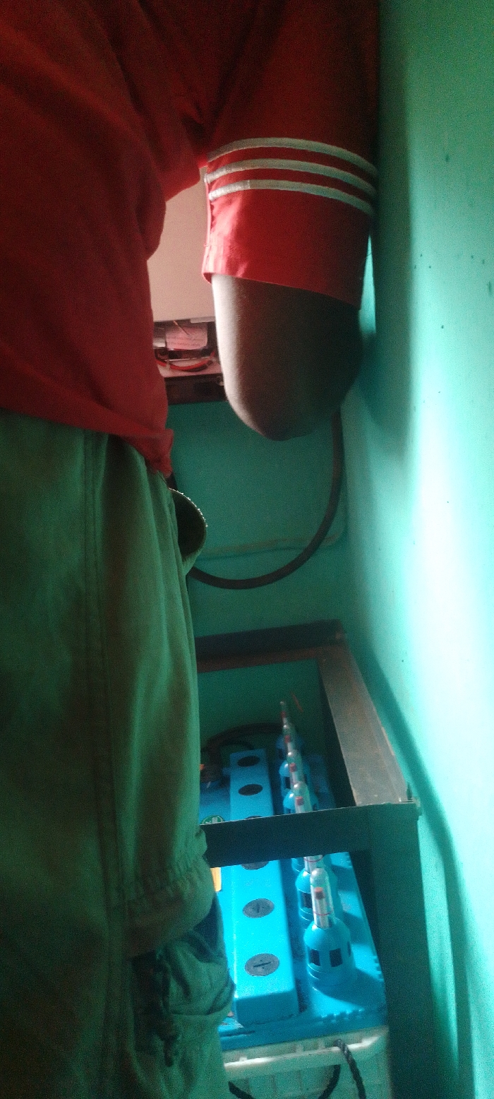 A partial view of an individual is captured in an indoor setting, likely a utility or storage room, within the city of Unknown, Unknown