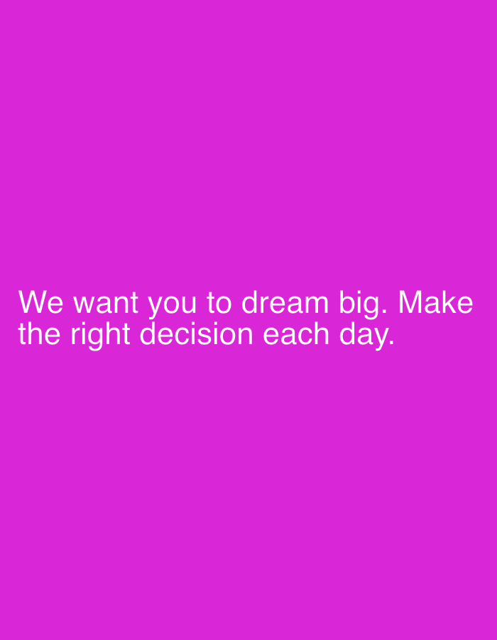 The image, situated in the city of Kugbo, Nigeria, displays a uniformly magenta-colored background. Against this solid color, white sans-serif text is centered horizontally and placed in the lower portion of the frame. The text reads: "We want you to dream big. Make the right decision each day." No individuals, additional objects, or discernible actions are present within the visual confines of the image, which functions as a graphic display.