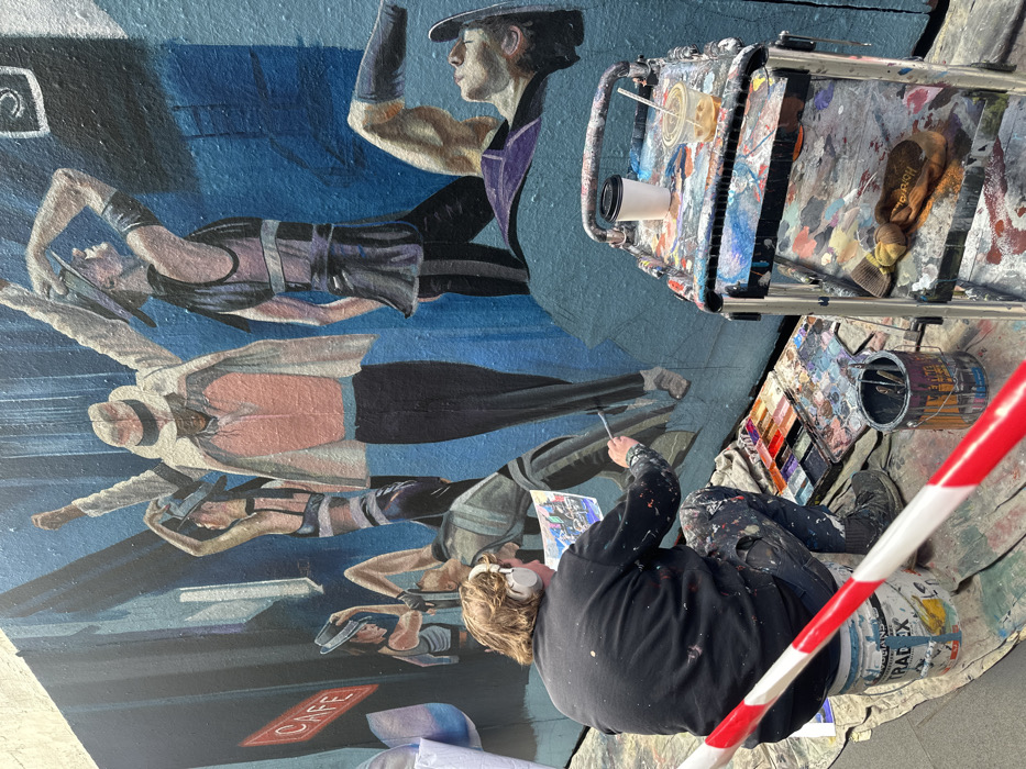 - "A male artist is depicted painting a large-scale mural on an exterior wall in Hosier Lane, Melbourne, Australia" by FM-P0ePn2, licensed under CC BY 4.0