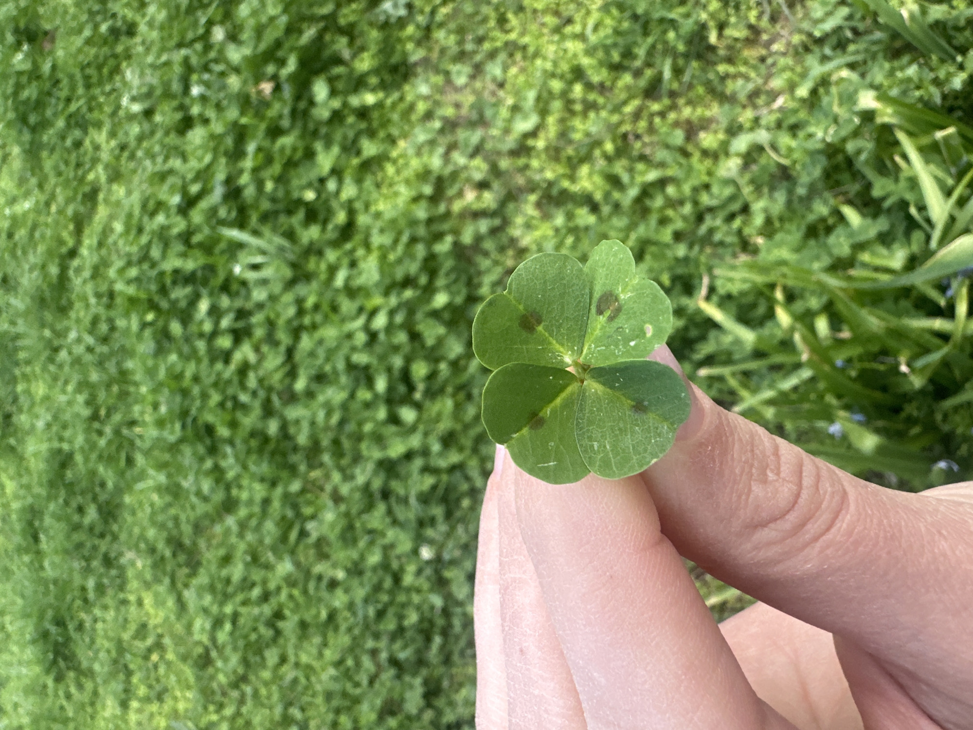 - "A person is holding a four-leaf clover in their fingers against a backdrop of green grass and some vegetation" by FM-wPb513, licensed under CC BY 4.0