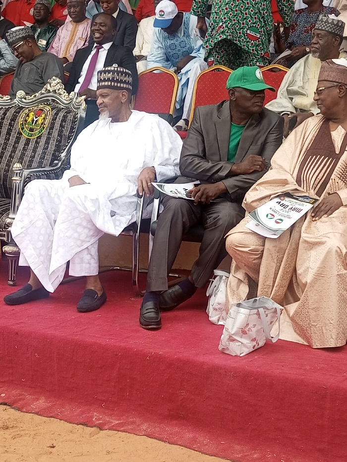 scene from a political rally in Birnin Kebbi, Nigeria, specifically at the coordinates 12