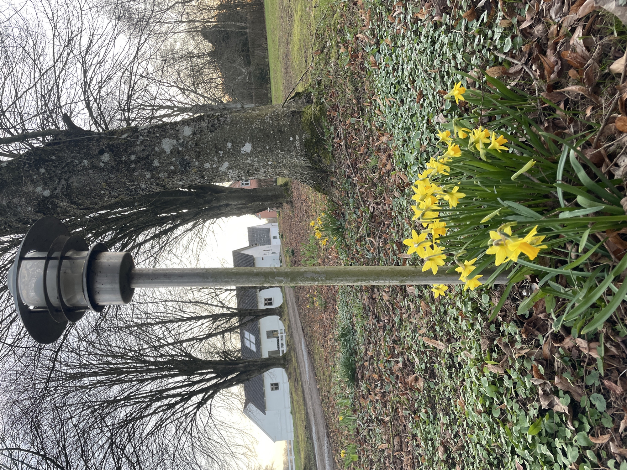- "The scene is an outdoor area in Vejle, Denmark, featuring a row of bare trees, a lamppost, a patch of blooming daffodils, and several white buildings in the background" by FM-aSc183, licensed under CC BY 4.0