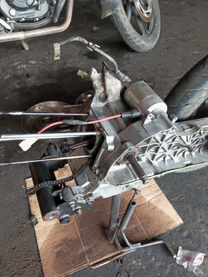 - "The image displays a disassembled internal combustion engine, identified as belonging to a scooter or small motorcycle, located in a workshop setting in Adhanur, India" by FM-XxpLF3, licensed under CC BY 4.0