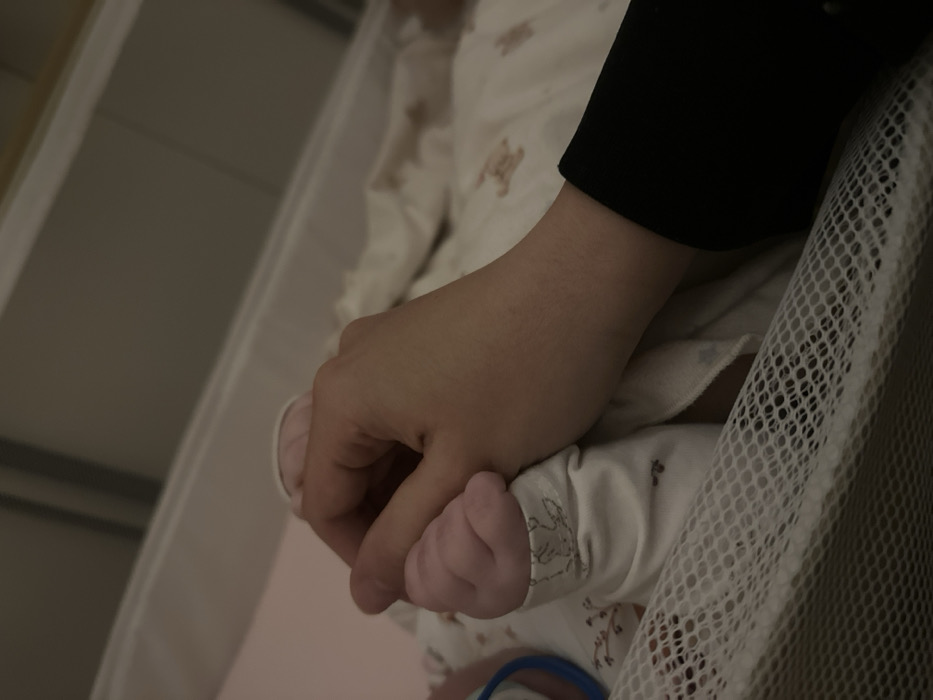 - "The image displays a close-up perspective of an adult's hand holding an infant's hand" by FM-7Oxfe2, licensed under CC BY 4.0