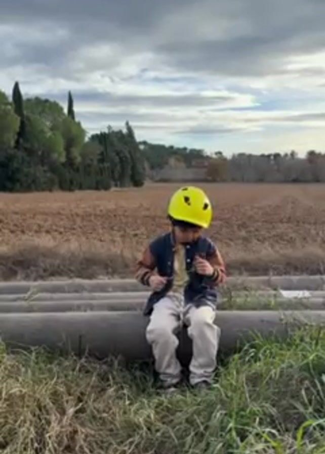 - "A boy sits on a set of logs wearing a yellow helmet, blue jacket, and beige pants" by FM-OZmdD3, licensed under CC BY 4.0