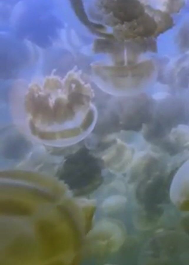 large group of jellyfish underwater