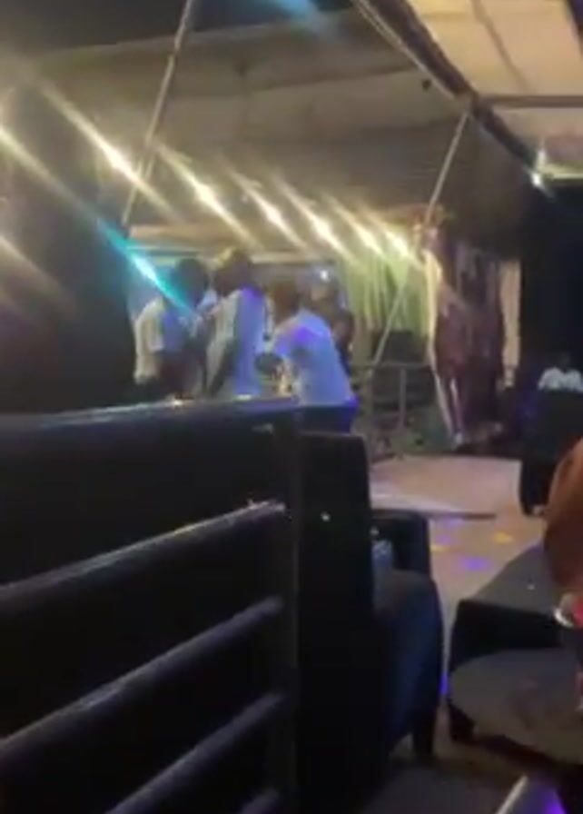night club scene with multiple individuals present