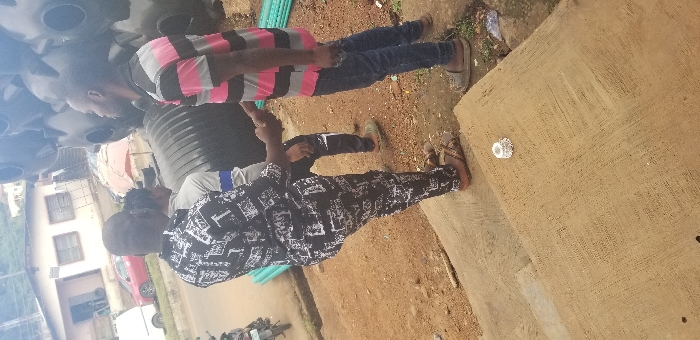 The image captures an outdoor scene in a commercial district of Ado-Ekiti, Nigeria