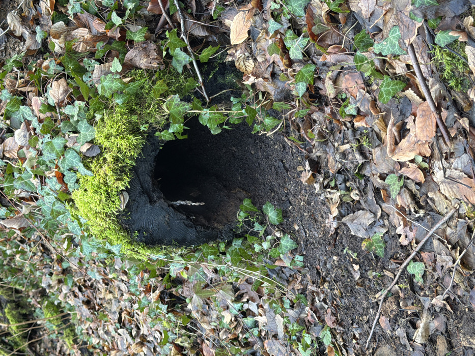 - "The image presents a close-up view of a hollow log opening situated on a forest floor in Pétange, Luxembourg" by FM-uP6nB3, licensed under CC BY 4.0