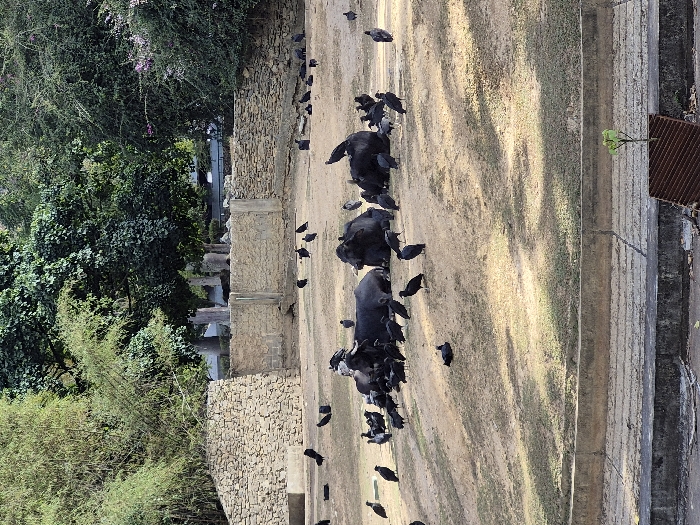 - "A group of water buffalo are resting in a dirt area surrounded by birds" by FM-I4ANH3, licensed under CC BY 4.0