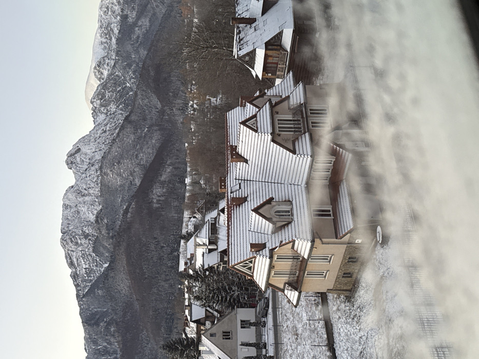 - "Snow-dusted houses with steeply pitched roofs cluster together near a towering, rocky mountain face" by FM-XR4443, licensed under CC BY 4.0