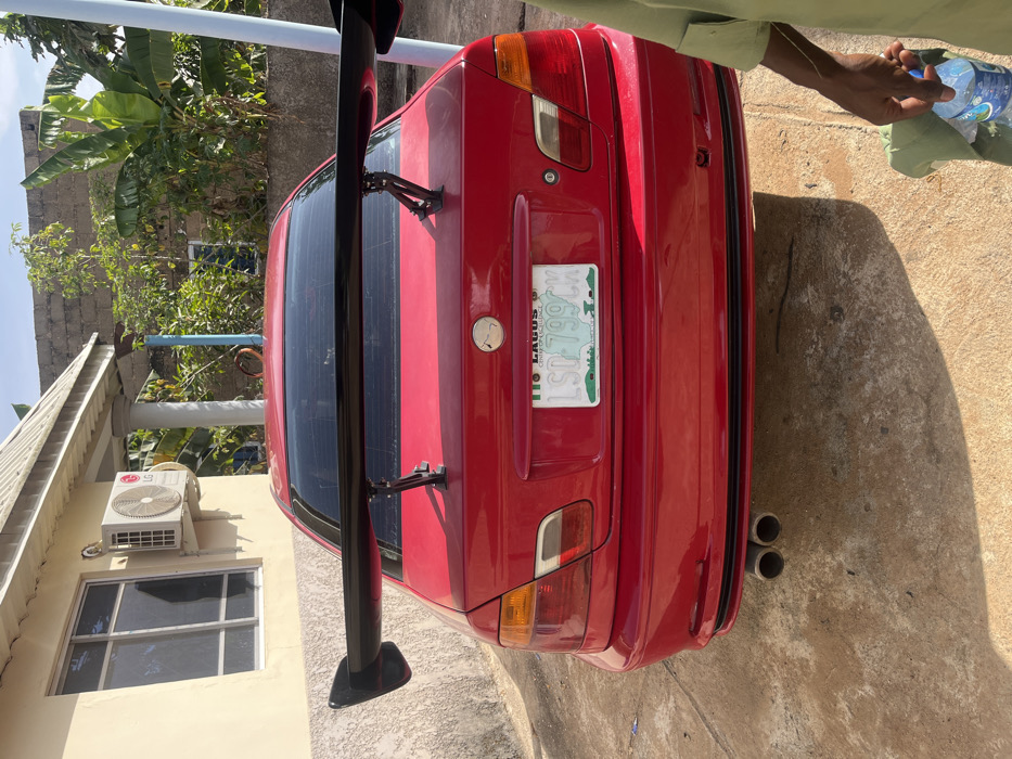 - "This image depicts the rear of a red sedan, equipped with a large black aftermarket rear spoiler, parked outdoors in what appears to be a residential or commercial area in Gura Top, Nigeria" by FM-m0Zda2, licensed under CC BY 4.0
