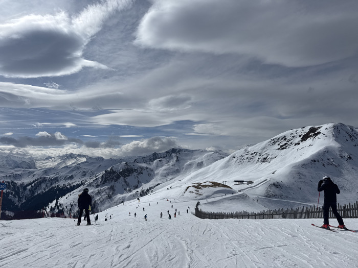 - "The scene depicts a wide, snow-covered ski slope within the Saalbach-Hinterglemm ski area in Austria, under a sky with scattered grey and white clouds" by FM-TkSmg1, licensed under CC BY 4.0