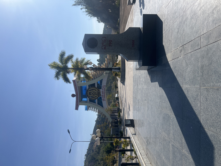 A stone monument displaying "Lao 790" and "2006" stands prominently on a paved plaza