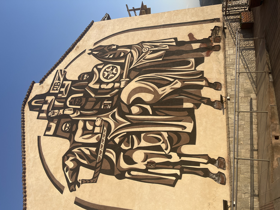 - "A large abstract mural, rendered in shades of cream, light brown, and dark brown, dominates the stuccoed cream-colored exterior wall of a building in Veliko Tarnovo, Bulgaria" by FM-RY5jV2, licensed under CC BY 4.0