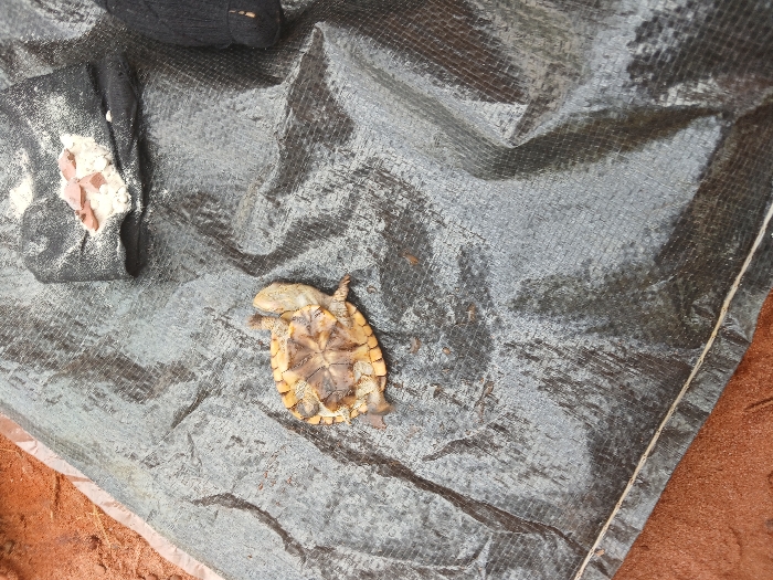 - "The scene, located in Idah, Nigeria, presents an overhead view of a small turtle and various objects positioned on a dark, textured tarp" by FM-Oh2n63, licensed under CC BY 4.0