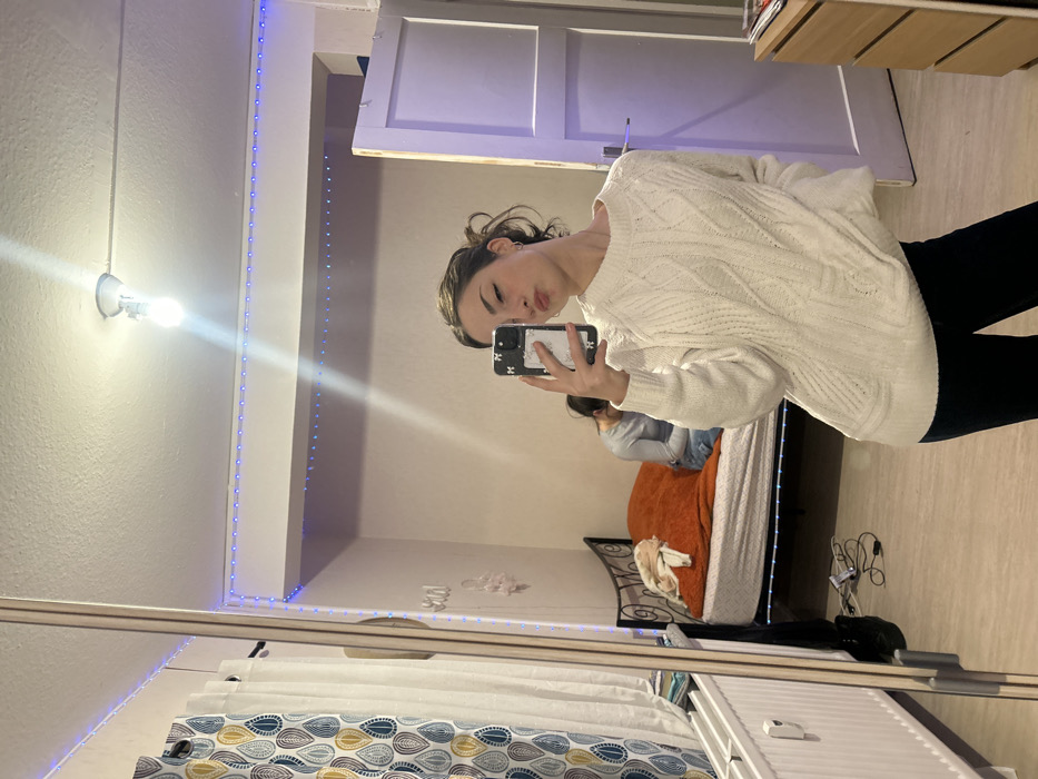This image depicts a young female taking a mirror selfie in a residential room located in Strasbourg, France